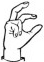 На ћирилици написано ЗОРАНА ТЕОФИЛОВИЋ састоји се из 16 слова [?]. Исписано ћириличном једноручном азбуком за глувонеме: